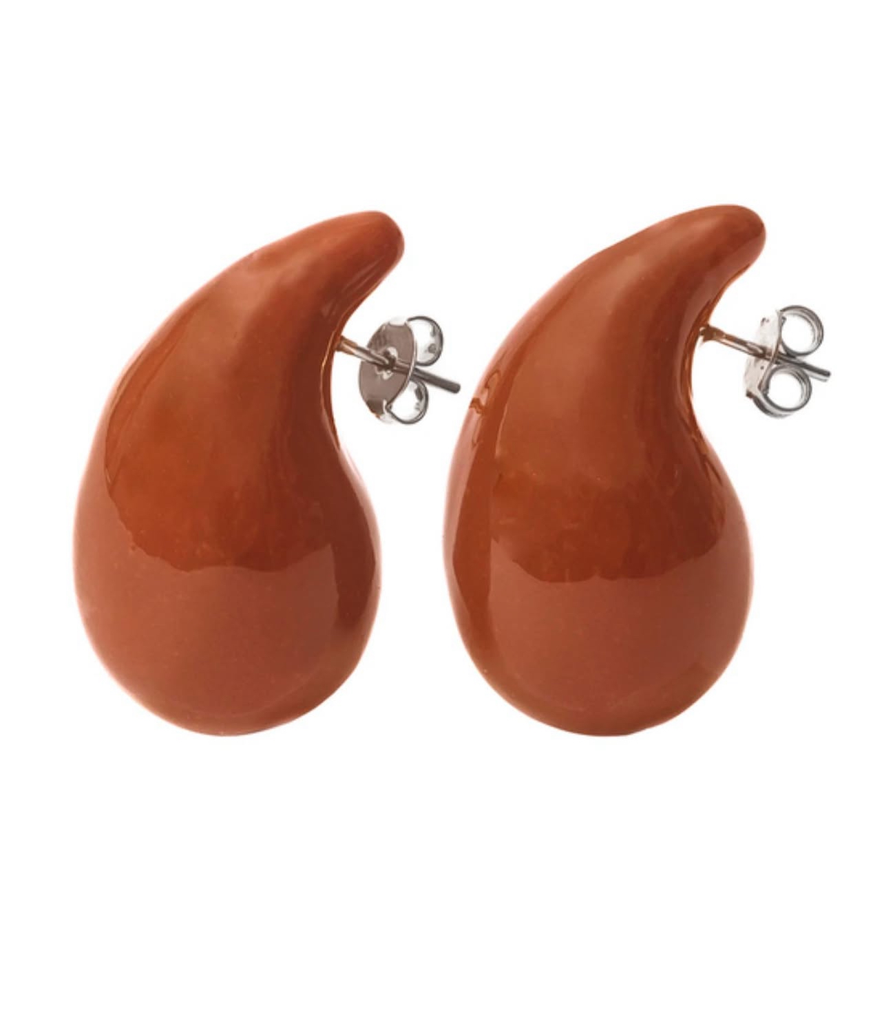Brinco Gota Oca M Esmaltada Marrom em Ródio Branco